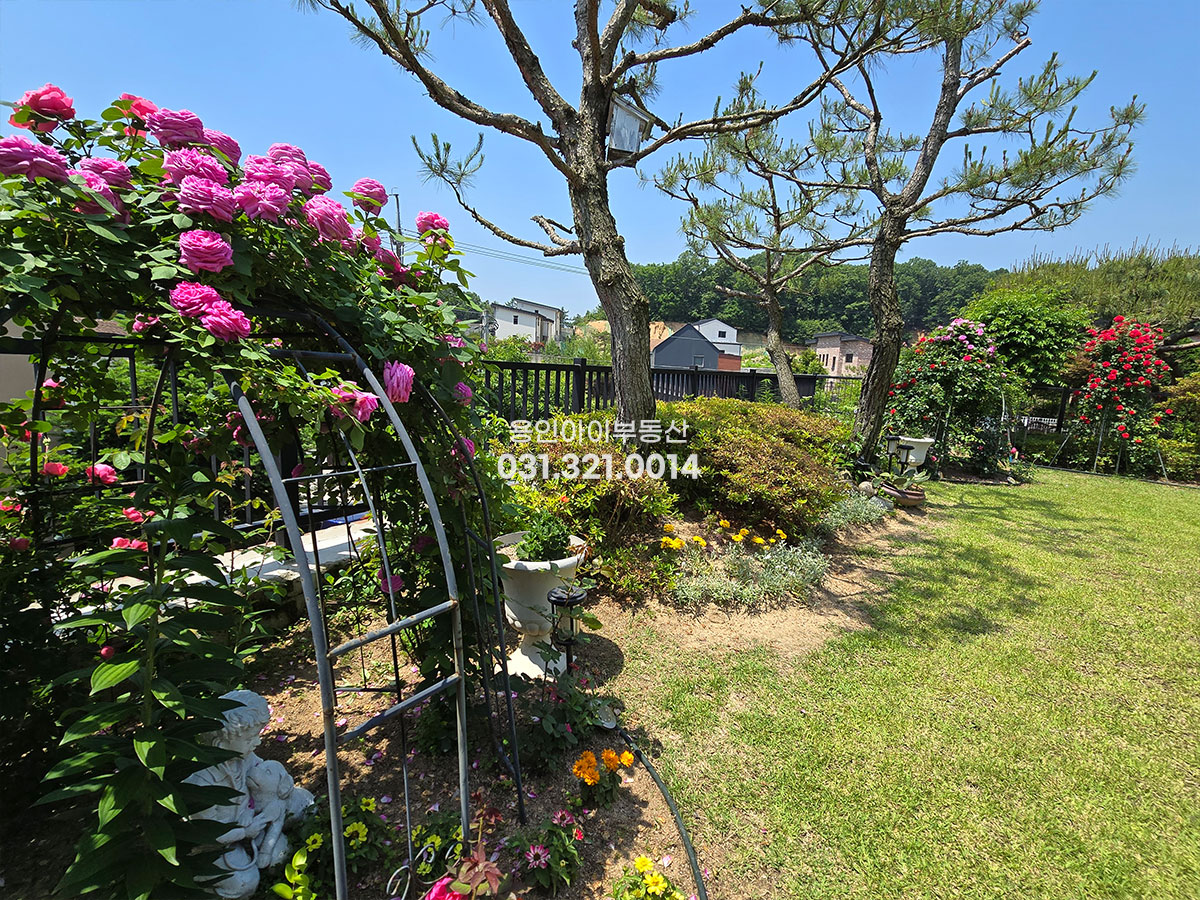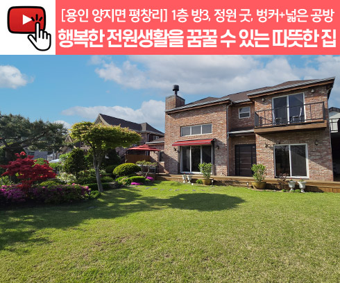 No.3323] 용인 양지 평창리 행복함이 뿜어나오는 따뜻한 새실마을 전원주택, 1층 방3, 멋진 정원, 벙커2대, 넓은 공방겸 사무실