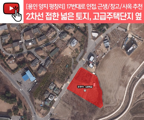 No.3341] 용인토지매매, 양지 평창리 2차선변 접한 넓은 토지. 유명타운하우스 바로앞