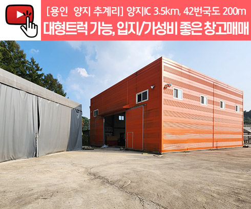 No.3500] 용인창고매매, 양지면 추계리 양지IC 3.5km, 42번국도 200m 대형트럭가능한, 80평 가성비 좋은 창고매매