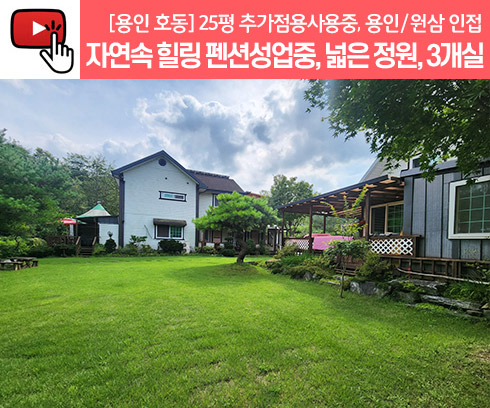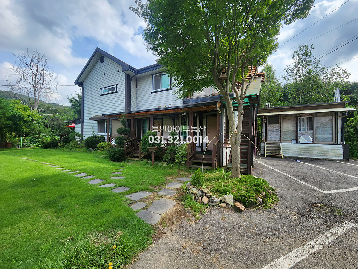 No.3734] 용인펜션매매 처인구 호동 공기좋고 물 맑은 곳, 별장같은 자연속 힐링 펜션성업중인 2채 통매 물건입니다. 넓은 정원 3개호실 운영중, 펜션 사무실 공방 숙소 추천