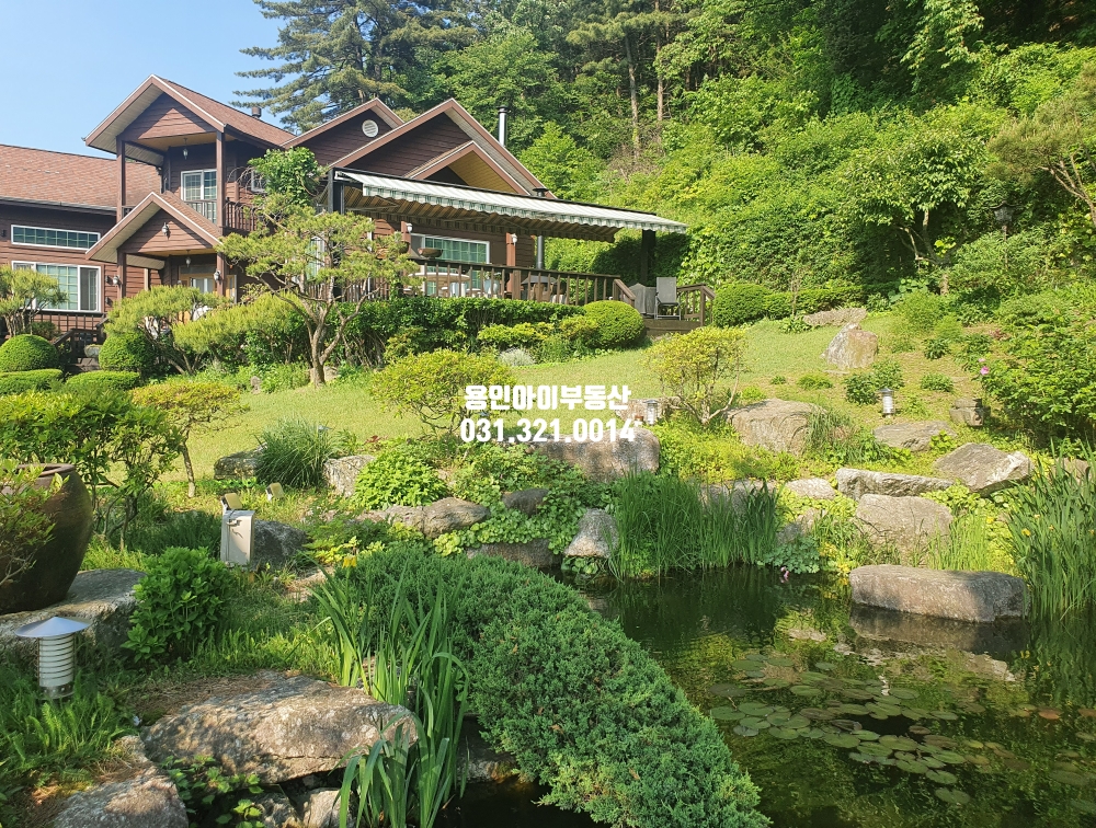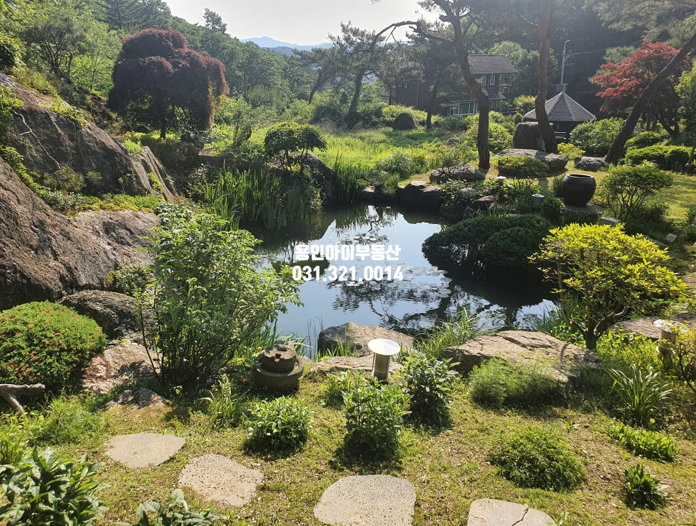 연못과 폭포가 있는 마당이 아주 넓게 있습니다.