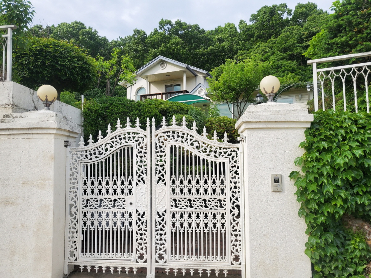 주택 뒤로는 산으로 둘러싸여 있어서
