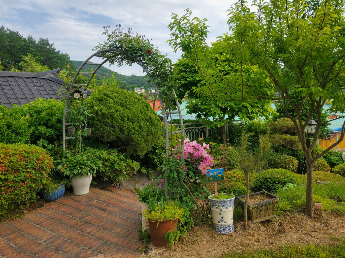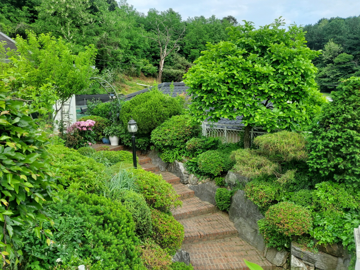 정원에 각종 꽃나무 있어서