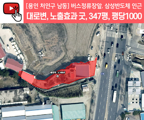 No.3822] 용인토지매매 처인구 남동 6차선대로변, 노출효과 굿! 347평 평당1000, 버스정류장앞, 삼성반도체 국가산단 수혜지역