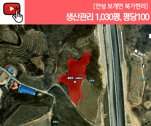 매매 : 10억3천(평당100)◎면적정보◎면적 : 3,405㎡(1,030평)지목 : 전용도지역 : 생산관리◎기타정보◎- 완전 숲세권 토지